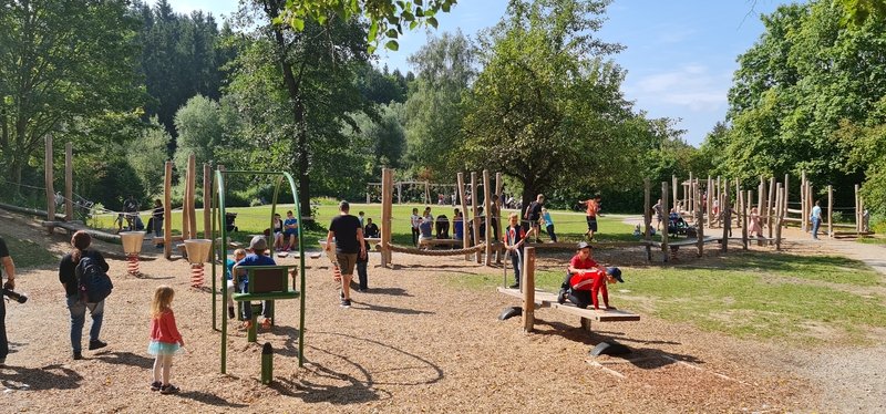 The balance route and the ‘swing forest’ both have clearly identifiable access points, including for people with visual impairments. Within the play equipment, different levels of difficulty can be used.