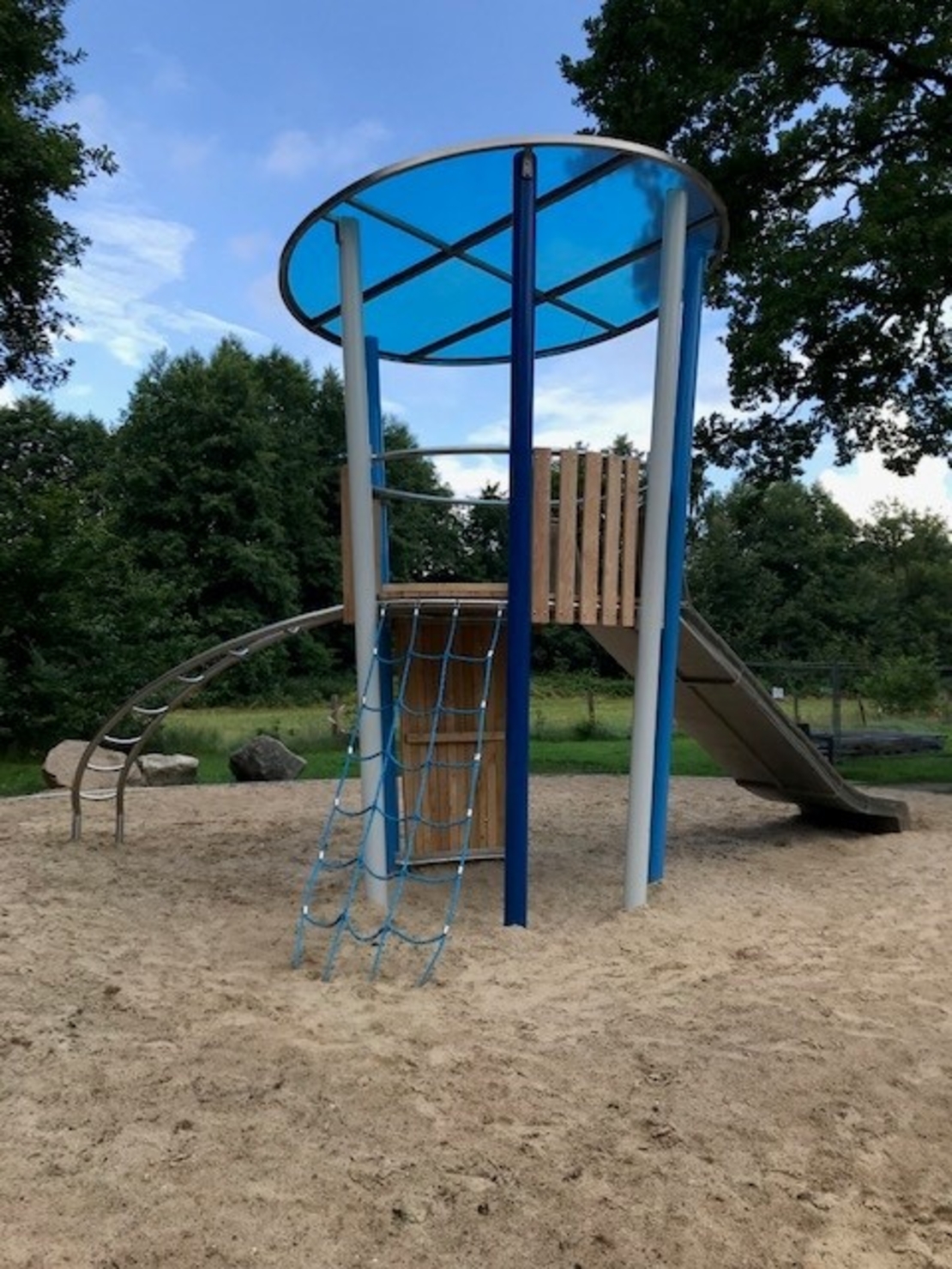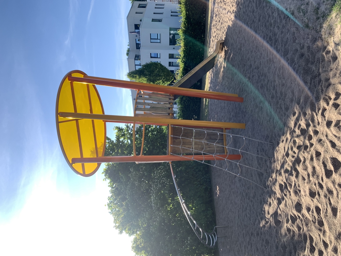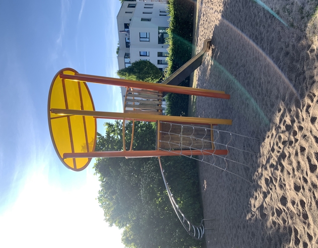 RUNDES SANDSPIELPODEST MIT BUNTER FIGUR