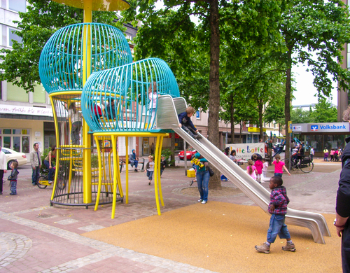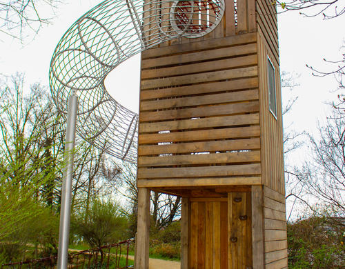 SPIELTURM Rakete als Spielkombination mit drei Rutschen