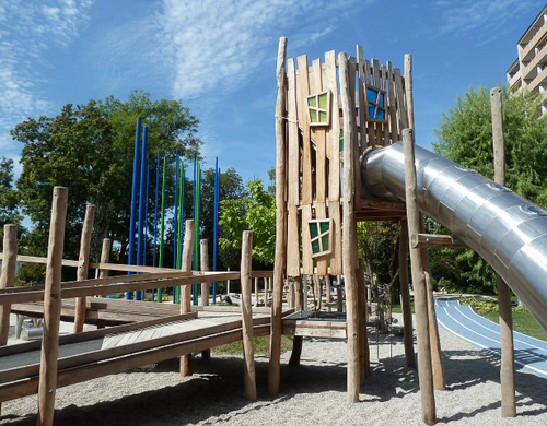 RUTSCHENTURM REMMI DEMMI Standpfosten auf verzinkten Pfostenschuhen