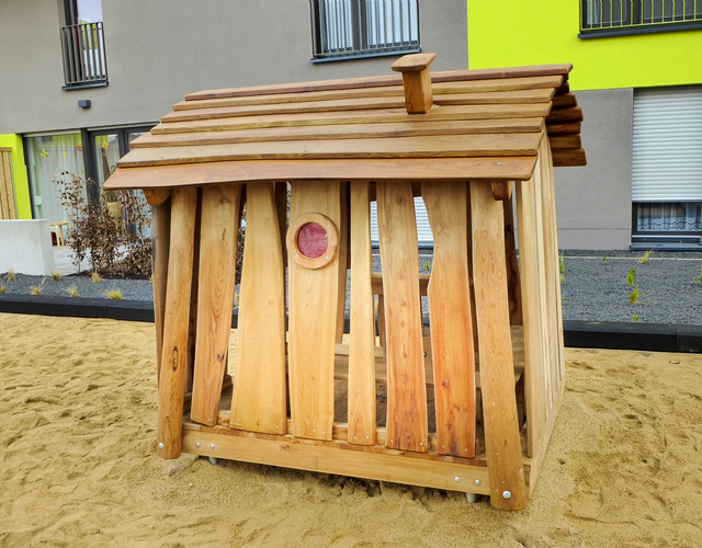 SPIELHÄUSCHEN HUMMEL MIT STAHLPFOSTEN