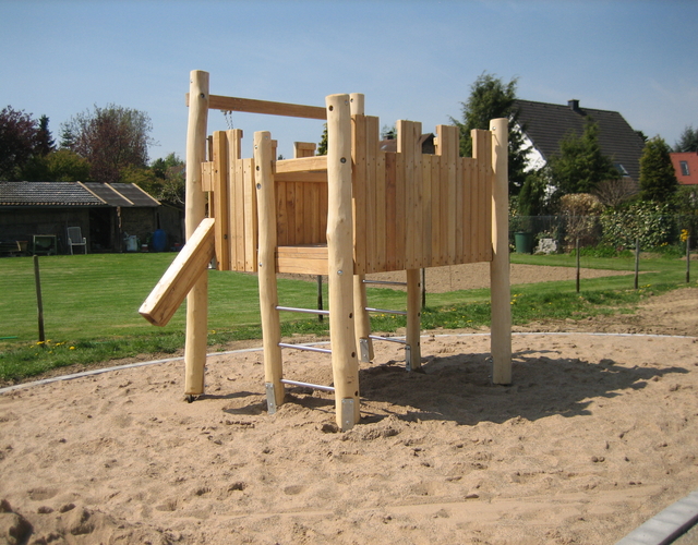 KINDERHAUS AUS ROBINIENRUNDHOLZ