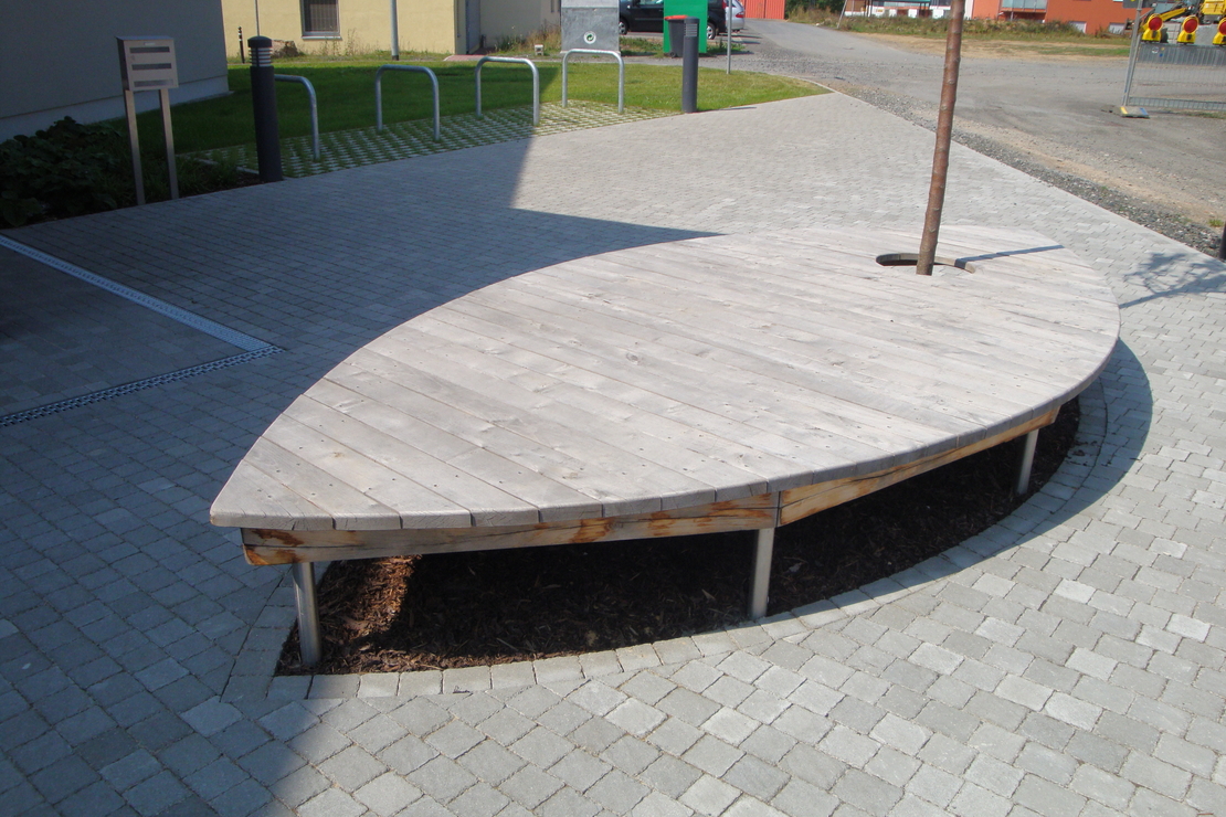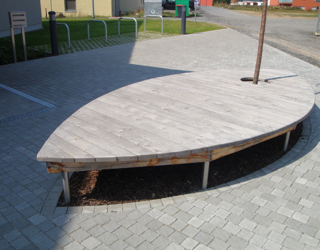 Kinder und Erwachsene sind draußen immer abwechselnd in Bewegung oder auf der Suche nach kleinen Rückzugsnischen und Ruhepunkten. Mit den Sitzpodesten werden die Menschen wie im Urlaub zu "Inselhoppern", jede Insel ist wie ein Beobachtungsposten im "Meer der Welt". Das einfache und neutrale Design ermöglicht unterschiedliche Inselgrößen und Höhen – variabel für alle Menschen!