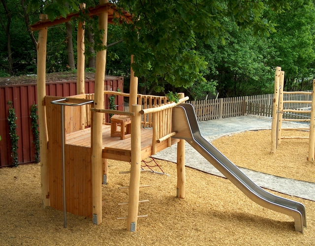 Unser "Turm-Klassiker" ist kompakt und komplex und bietet vielfältige Spielmöglichkeiten. Die Größe der vom Dach geschützten Plattform gewährt ausreichend Bewegungsraum für die Aktivitäten. Er ist auch erweiterbar, wie auf dem Bild unten links zu sehen ist.