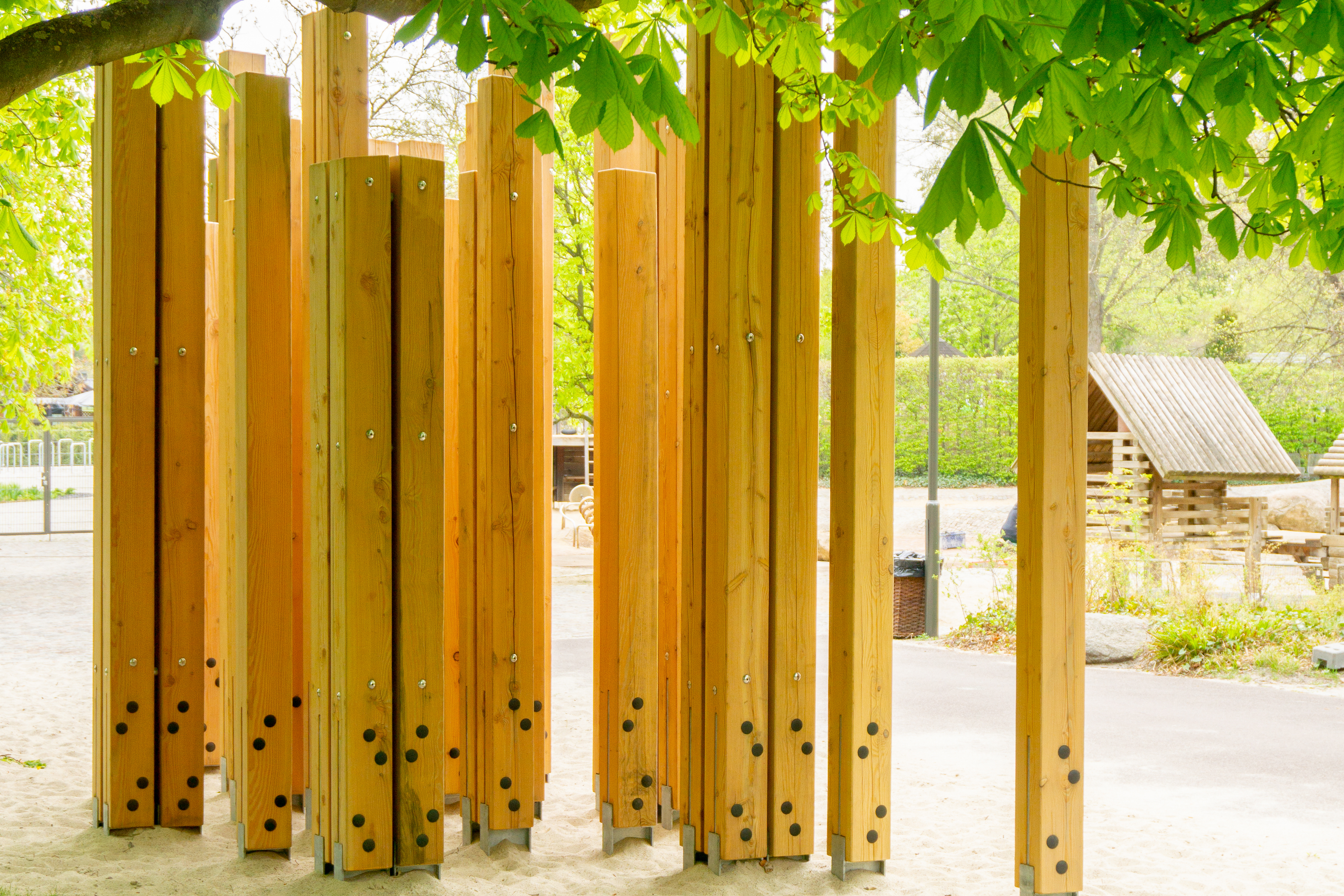 Im vergangenen Jahr wurde der Landschaftspark im Süden von West-Berlin durch ein Kantholzstelen-Labyrinth ergänzt. Die Idee dahinter ist aber keineswegs neu. Das Original wurde für die Bundesgartenschau 1985 entwickelt und musste abgebaut werden, da die Standsicherheit durch Fäulnisschäden nicht mehr gewährleistet war.