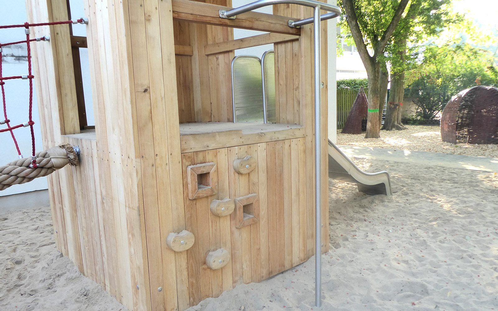 In der evangelischen Tageseinrichtung für Kinder haben wir mit der Kistenturm-Spielkombination und einer Vogelnestschaukel für neue Spielmöglichkeiten im Außenbereich der Kita gesorgt. Mit den verschiedenen Aufstiegen, den Rutschmöglichkeiten und seinen bunten Fenstern bietet der Kistenturm viele spannende Anregungen. Die Schaukel bringt Schwung in den Außenbereich und sorgt für ein weiteres Highlight.