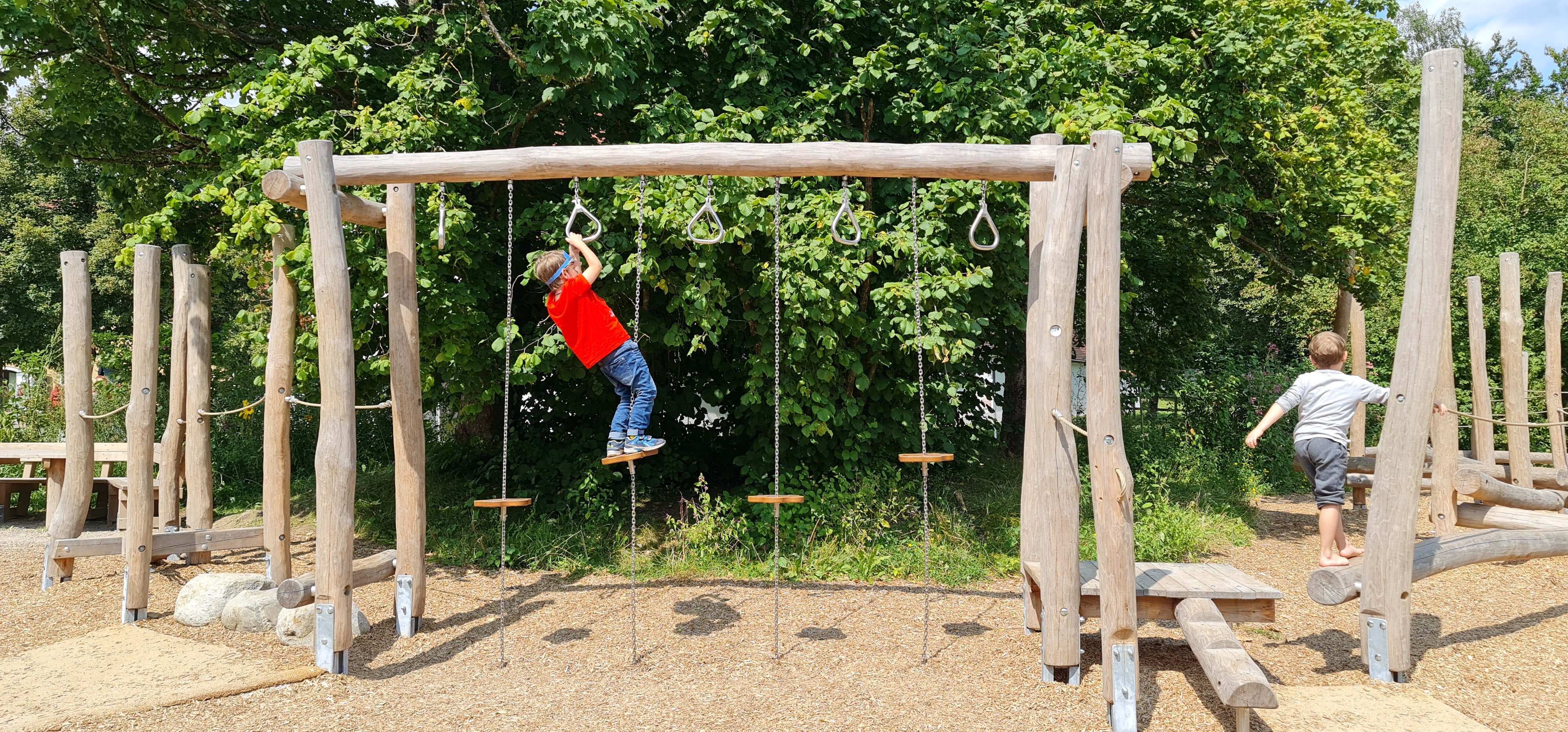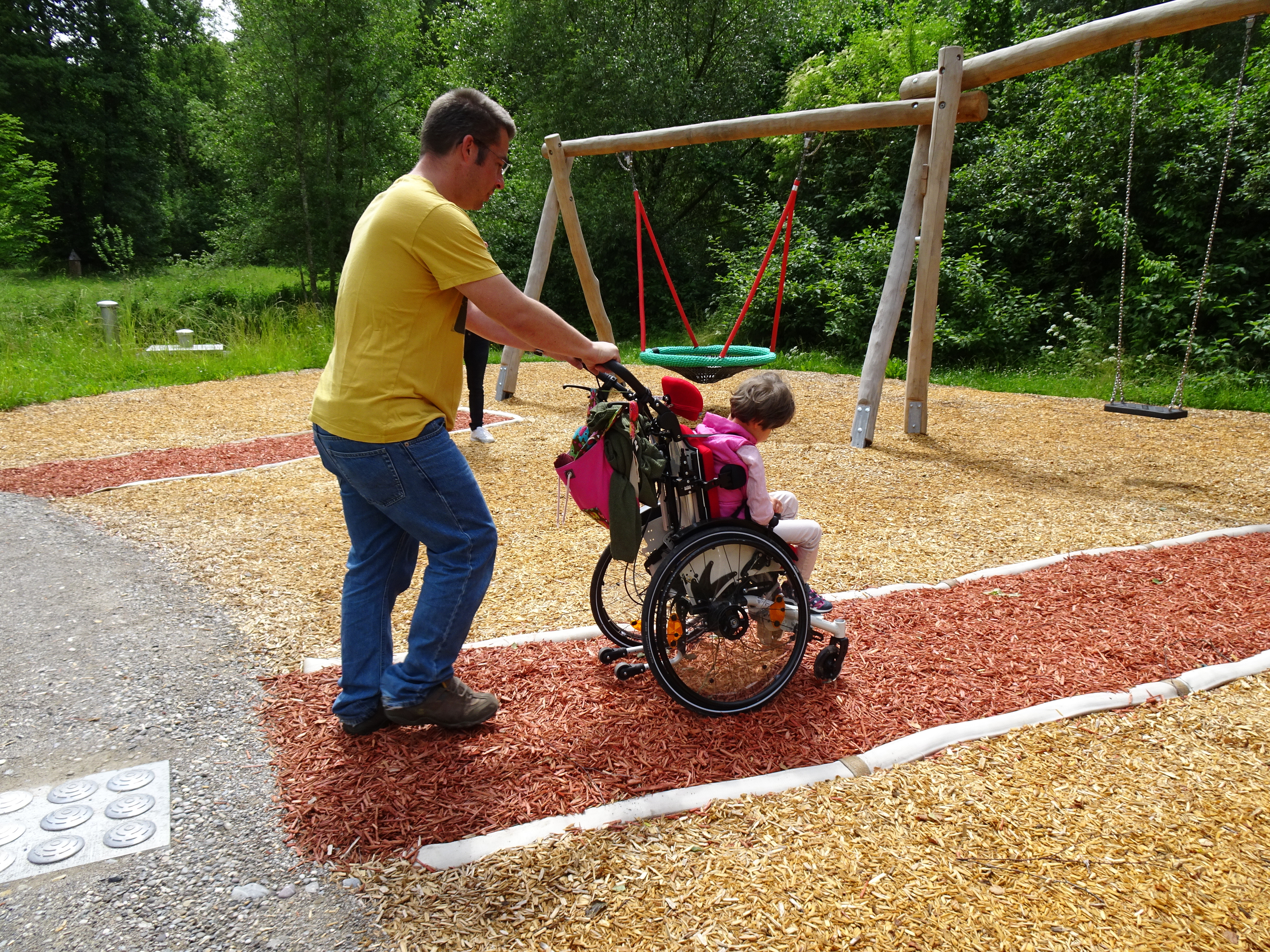 Die Balancierstrecke, genau wie der Schaukelwald, haben klar erkenntliche Zugänge auch für Menschen mit Sehbehinderung.