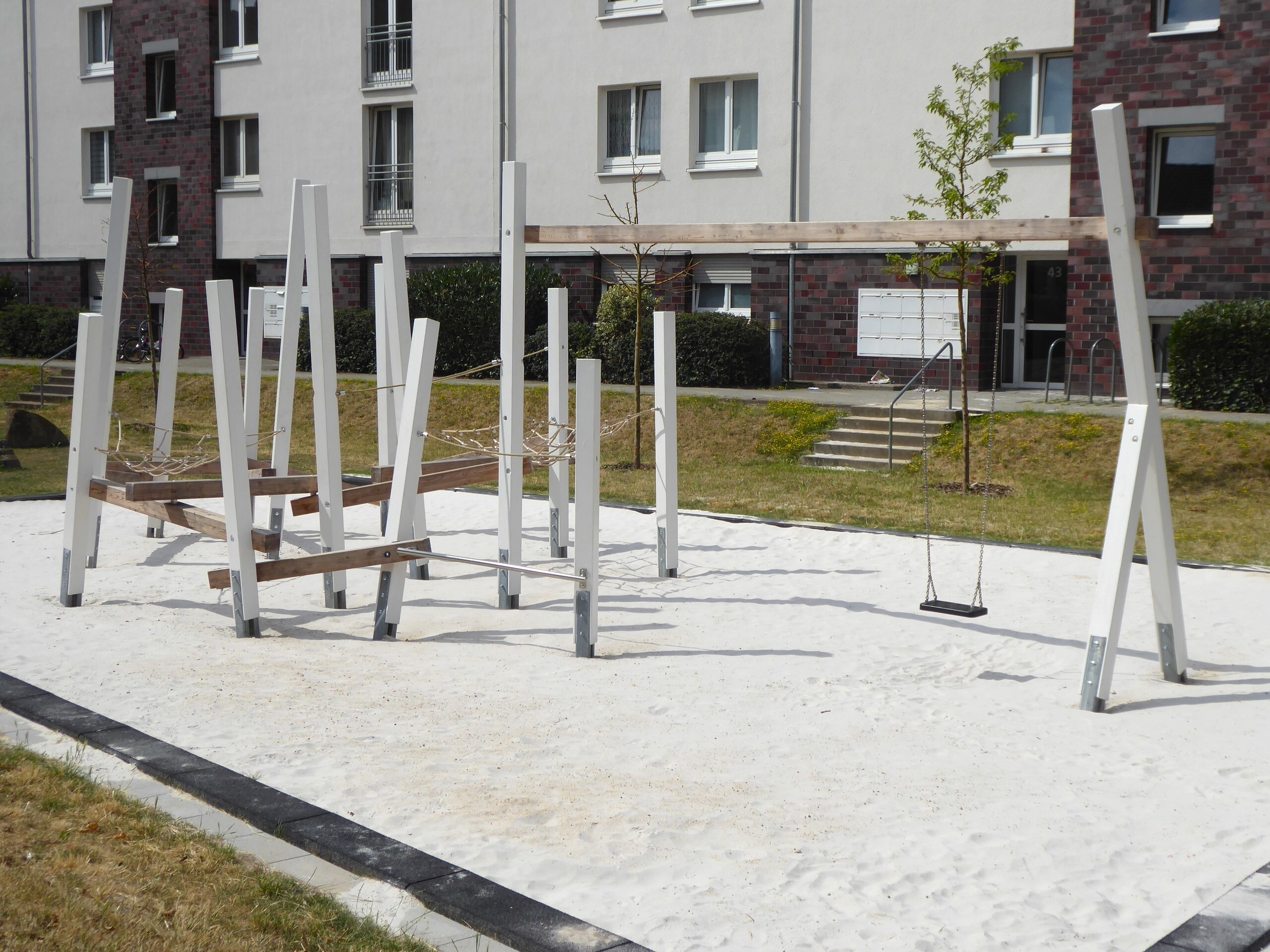 Die Wohnanlagen im Norden des Kölner Stadtteils Kalk werden bereits seit einigen Jahren von der GAG Immobilien AG durch moderne Neubauten ersetzt. Im vergangenen Jahr wurden auch die Gebäude im Bereich der Albermannstraße modernisiert und von uns mit neuen Spielmöglichkeiten ausgerüstet.