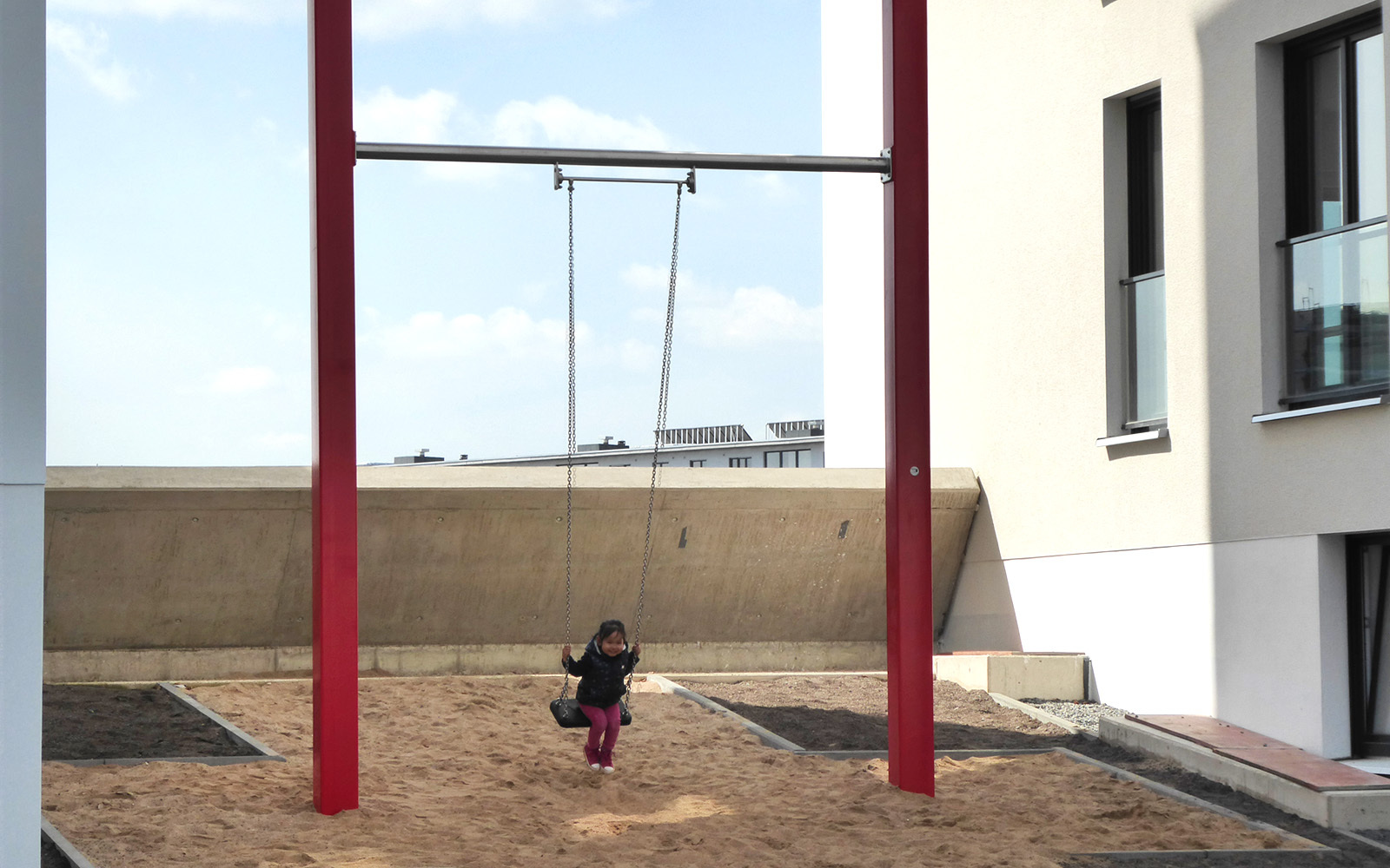 Der im Wohnumfeld des neuen Kölner Quartiers Butzweilerhof gebaute Spielplatz im Stil eines Flughafens mit einem Tower und einem Gepäcktransporter sorgt für ein optisches Highlight und erinnert an den damaligen Flughafen im Stadtteil Ossendorf. Abgerundet wird der Spielplatz mit zwei aufregenden Schaukeln, u. a. auf schrägem Grund, die für ein tolles Schaukelerlebnis sorgen.