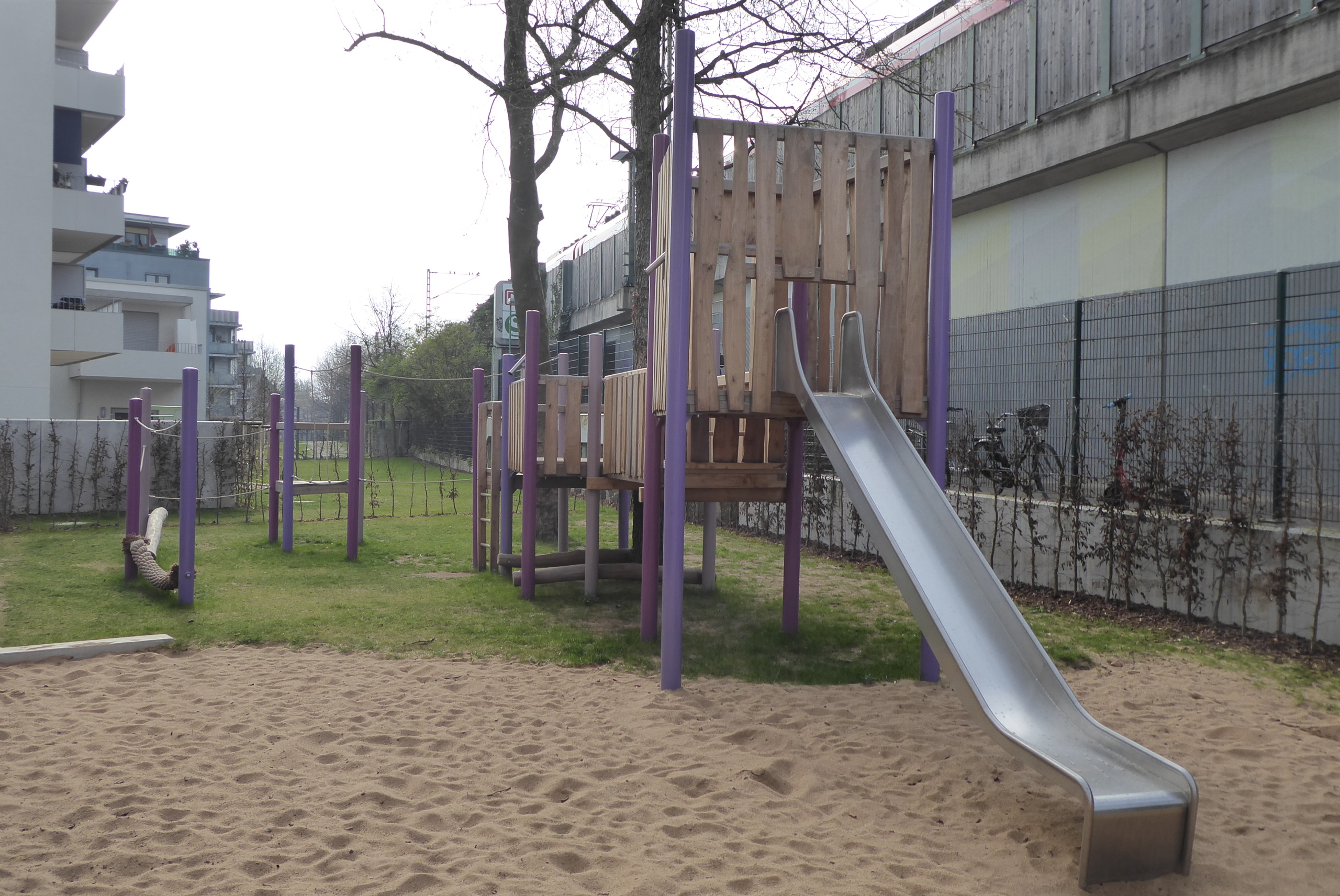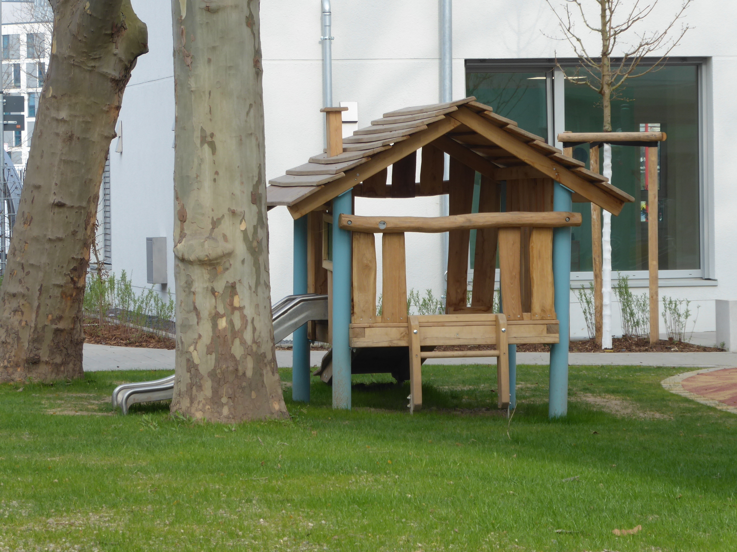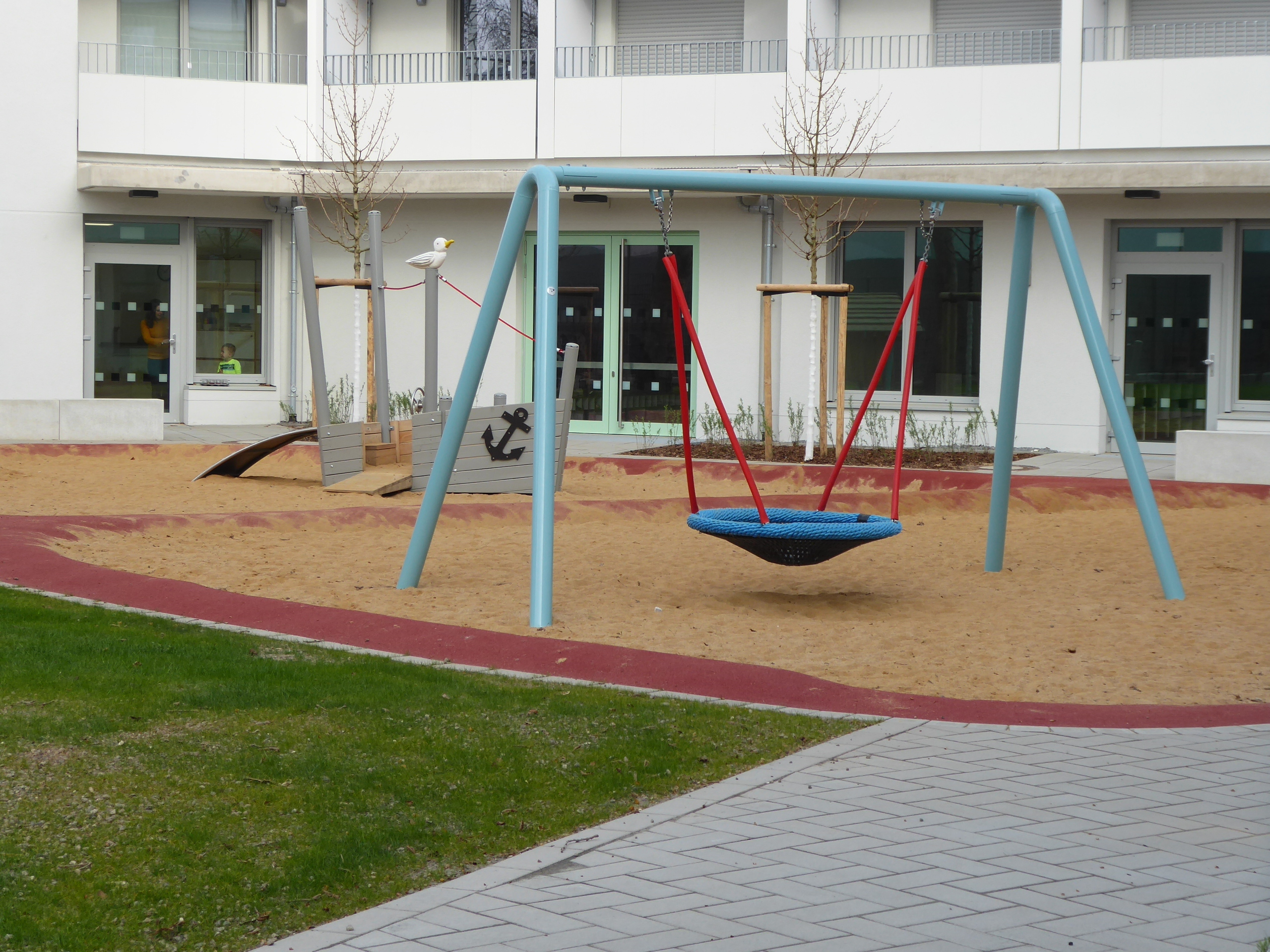 Mitten im Kölner Innenstadtbereich liegt die Wohnanlage der GAG, in deren Räumlichkeiten sich auch eine Kita befindet. Es sollten Bewegungs-, Rollenspiel und Sandspielangebote geschaffen werden, die sowohl Herausforderungen für die Vorschulkinder, als auch den kleineren Kindern bietet.