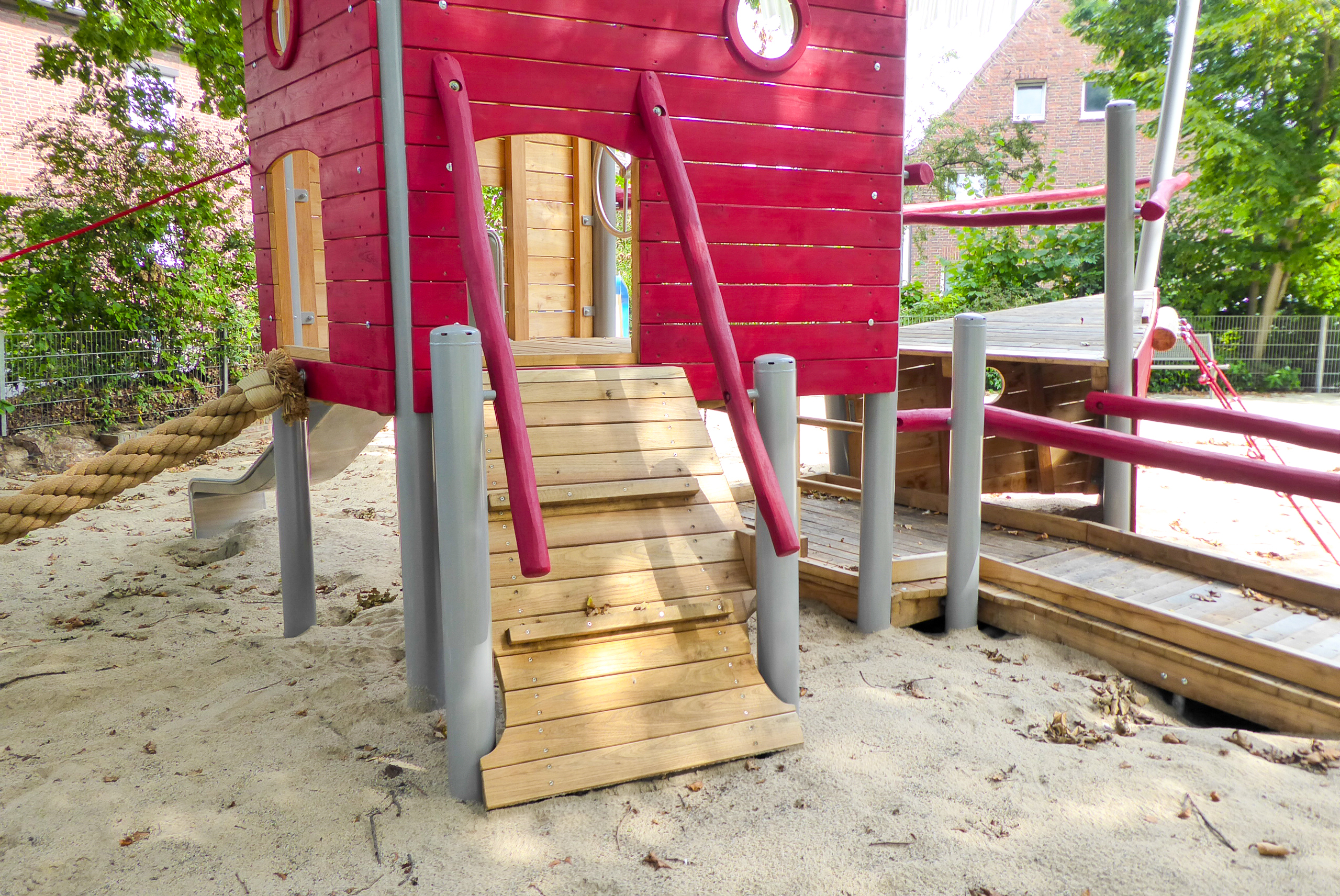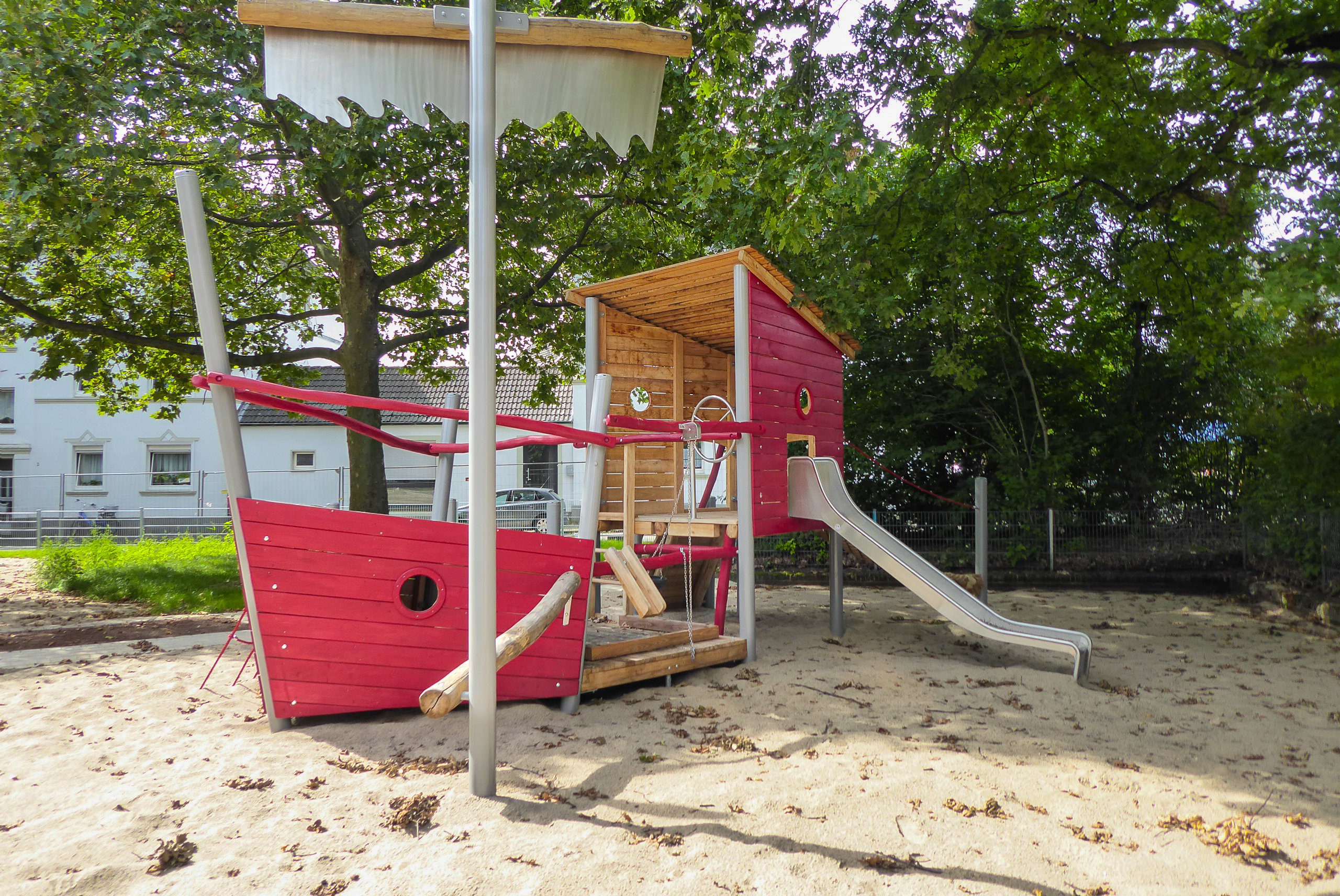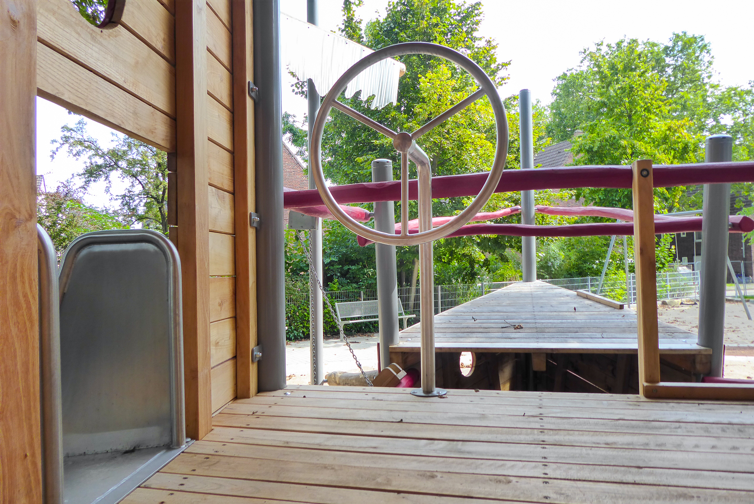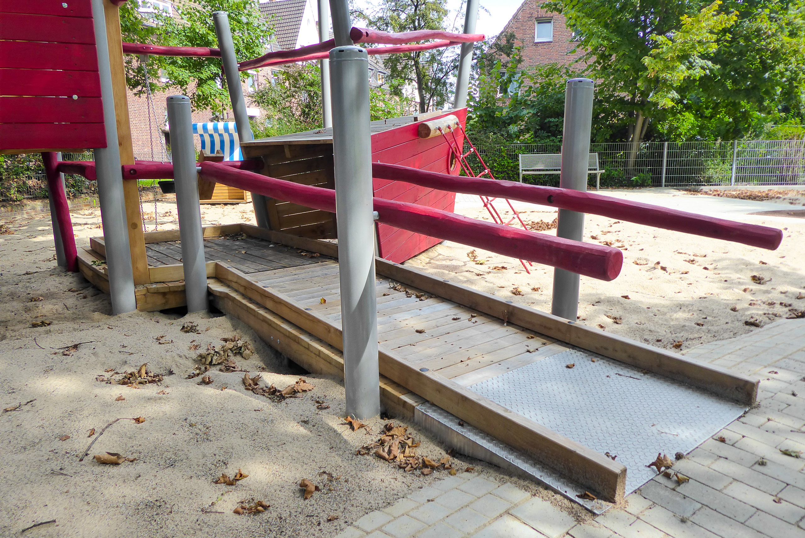 Ahoi, Piraten! Auf dem inklusiven Piratenschiff in Krefeld können alle gemeinsam in See stechen und die Weltmeere erkunden. Ob als Kapitän am Steuer oder als mutiger Matrose, hier wird jede*r Teil der Crew. Der Steg führt barrierefrei ins Schiffinnere.