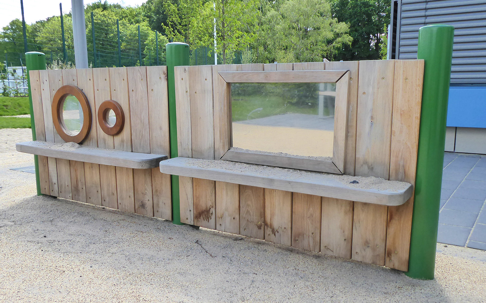 Wir haben in der Kindertagesstätte "Bunte Moleküle" einen kunterbunten Außenbereich mit vielen unterschiedlichen Spielelementen gestalten dürfen. Die Spielgeräte passen sich mit ihren rechteckigen Formen perfekt in ihr Umfeld ein, das ebenfalls sehr geradlinig gestaltet ist.