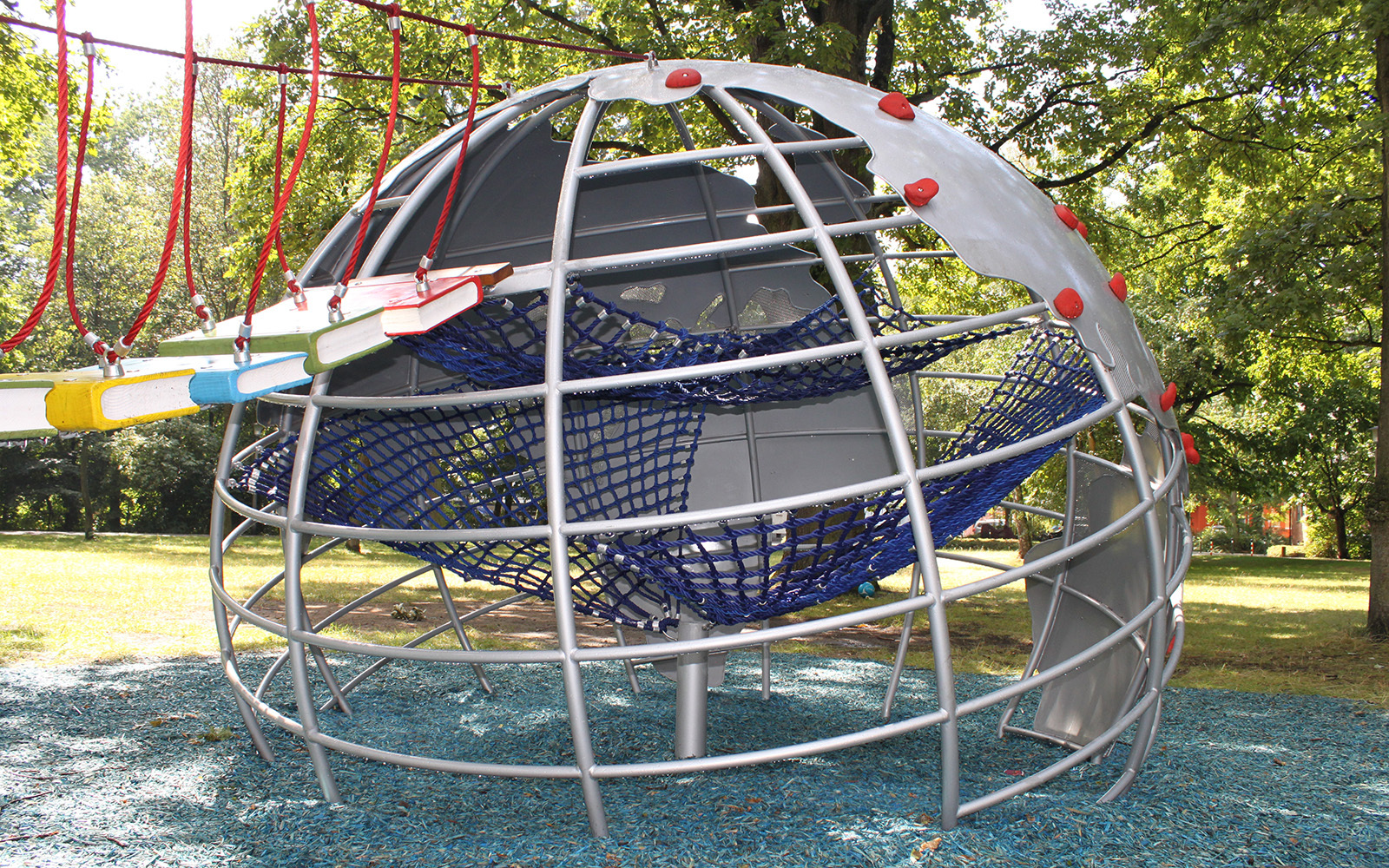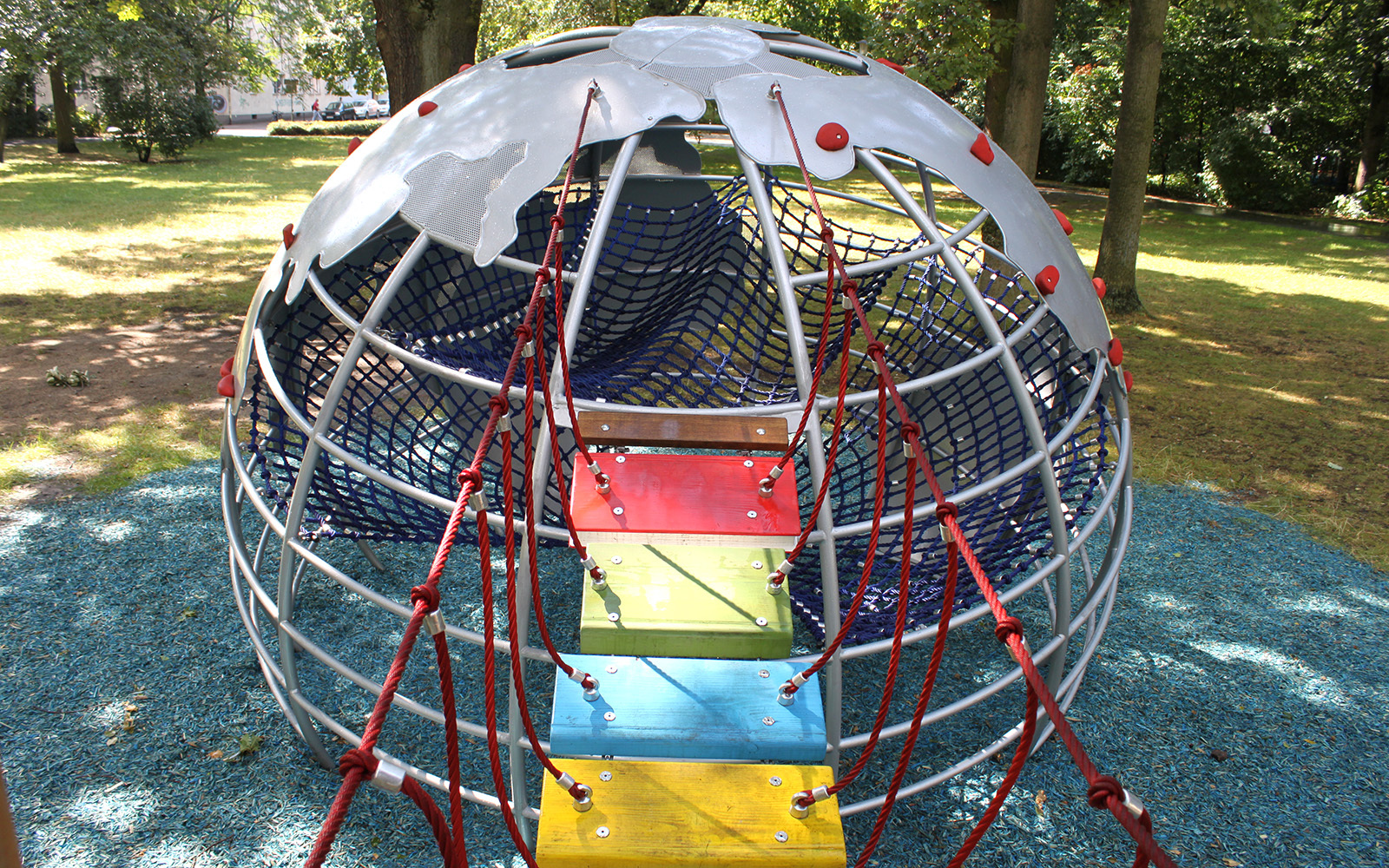 Im Nürnberger Stadtpark dreht sich alles um die Kleinen. Auf der hier angelegten „Straße der Kinderrechte" sollen Kinder ihre Rechte spielerisch kennenlernen. Unter dem Arbeitstitel „Mit Bildung die Welt besteigen“ ist eine Anlage entstanden, die zum Spielen und Entdecken einlädt. Ganz nach dem Motto „Dir steht mit viel Wissen die ganze Welt offen“ gelangt man von der riesigen Büchertreppe auf eine Bücherhängebrücke, die direkt in die „vernetzte“ große Weltkugel führt. Aber auch von außen ist es dank der gut erkennbaren Kontinente mit den vielen Klettergriffen, die Hauptstädte darstellen, möglich die Welt zu erkunden.