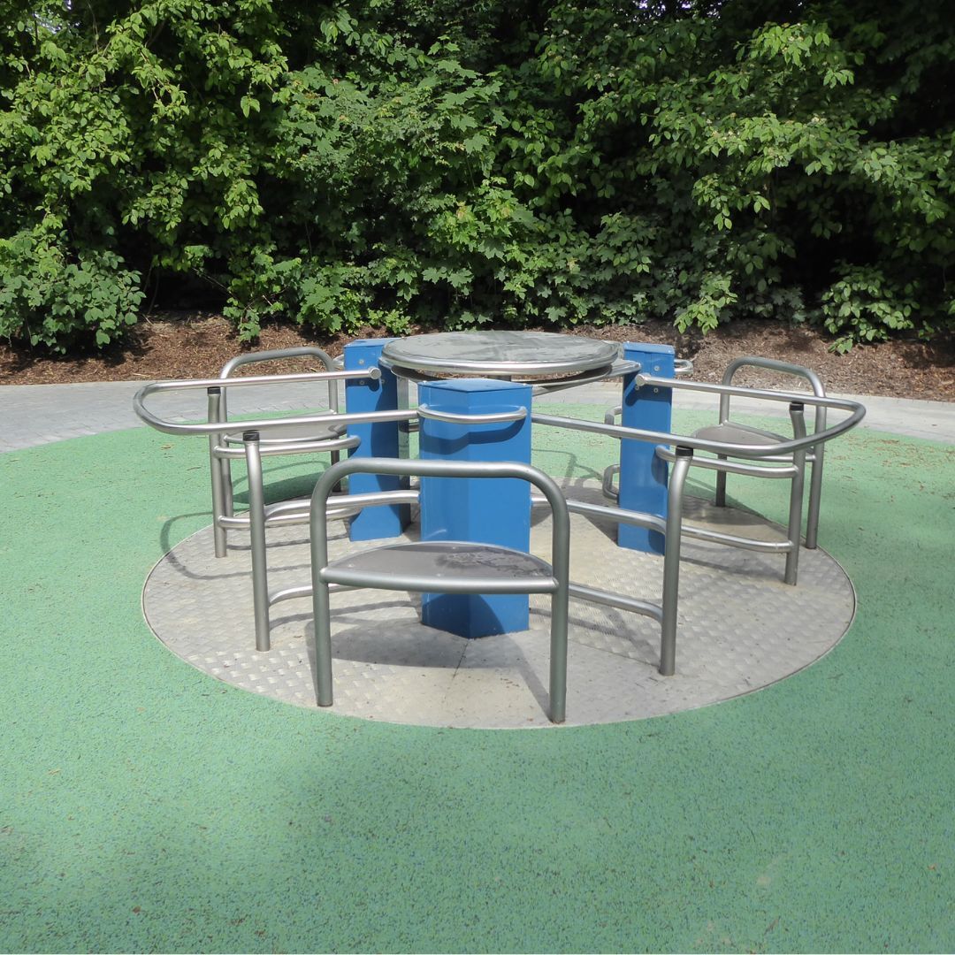 Zur Ausstattung des Spielplatzes gehört auch ein neuer Aufenthaltsbereich mit zwei Bänken und Tischen. Insgesamt wertet der neue Spielplatz das Freizeitangebot in der Umgebung des Grünen Sees deutlich auf