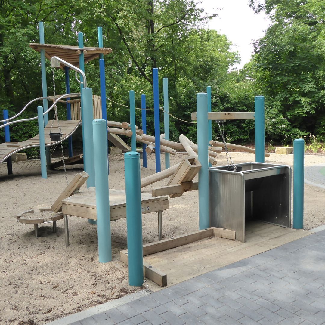 Am Grünen See ist der erste vollständig inklusive Spielplatz der Stadt Ratingen fertiggestellt worden. Kinder mit und ohne Behinderung haben ihre Ideen zur Gestaltung des Spielplatzes in die Planung eingebracht.