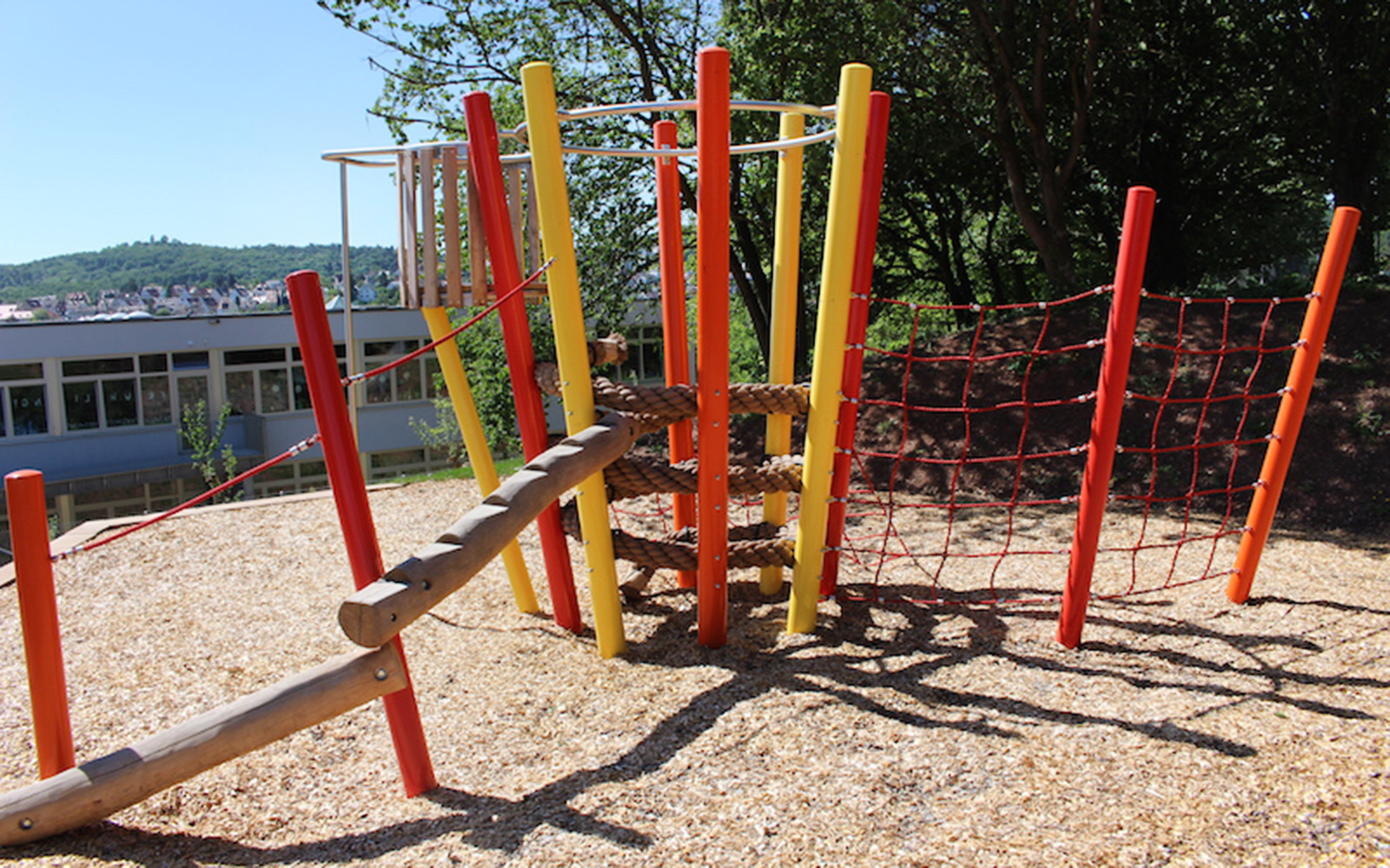 Der farbenfrohe Kletterturm und eine aufregende Rutsche laden die jüngeren Besucher des neuen Kinderhauses im Stuttgarter Ortsteil Botnang zum Rutschen, Klettern und Balancieren ein. Mit dem kleinen Ausguck haben die Kinder die Möglichkeit, hoch hinaus zu kommen und einen Überblick über das Gelände zu bekommen.