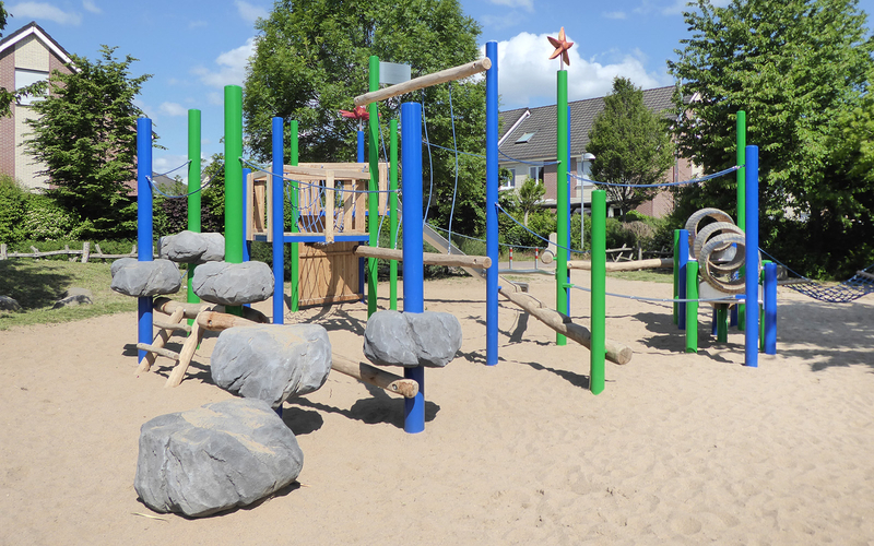 Bei diesem Projekt wurde ein bestehender Spielplatz durch uns mit neuen Spielgeräten ausgestattet. Die Stadt Troisdorf hat sich in diesem Fall für eine grün-blaue Stahlanlage mit schwebenden Felsen als besonderes Highlight entschieden.