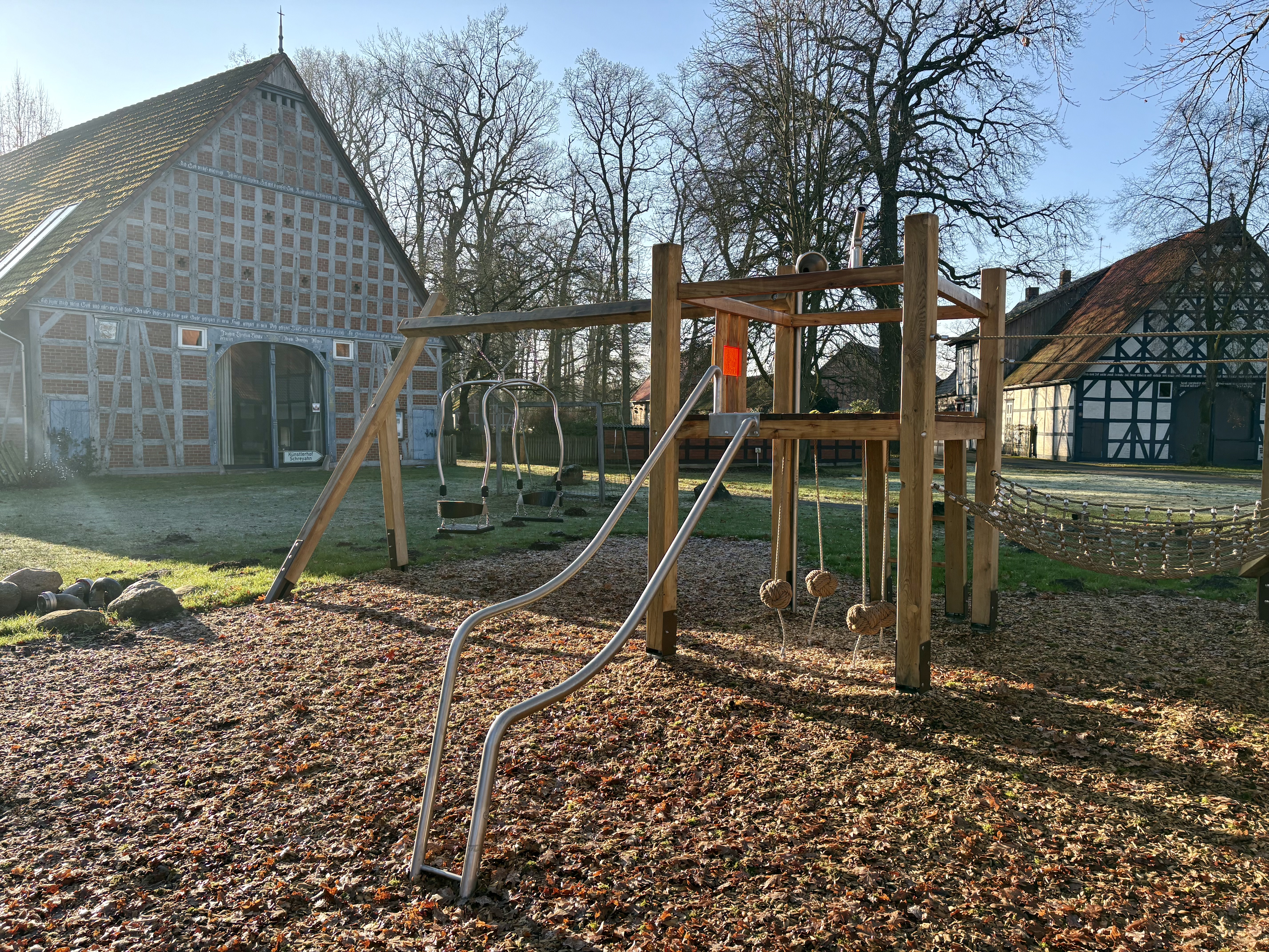 In Wustrow, Ortsteil Schreyan, entstand eine Spielanlage, die sich bewusst in die ländlich-historische Umgebung einfügt und gleichzeitig vielfältige Spielanreize bietet.
